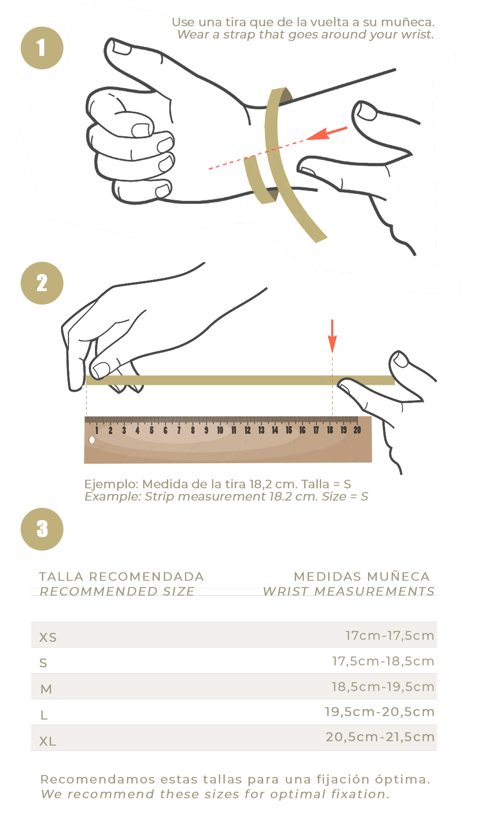 | Rango de tamaños de muñeca | 17-19 cm |